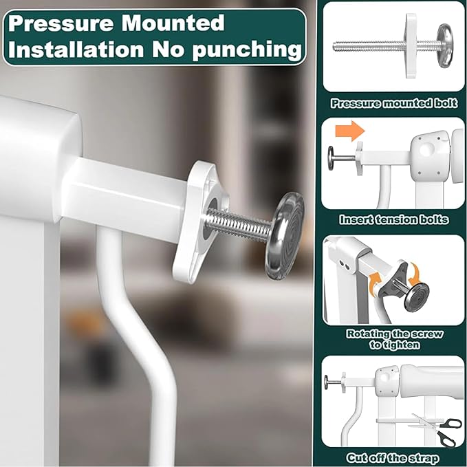 - 【EASY TO INSTALL & WALL FRIENDLY】 You can use Pressure mount installation,it's convenient and strong, and it can protect your wall .It's easy to remove,you can remove it anytime when it is not in use. Reuse is certainly possible when you move to a new place.Note:if you want to use it on the top of stairs,please use hardware mounted installation.