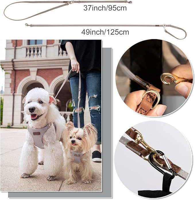- Dog leash:Puppytie’s dog harness is equipped with a multi-functional leash, which can be adjusted in two lengths of 49inch and 37inch. You can use it to easily carry two dogs out. It has the function of carrying keys or garbage bags. The function of wait in place allows dogs to wait in place quickly and safely