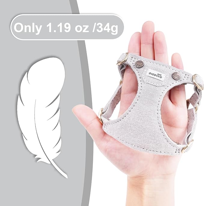 Puppytie No Pull xs Dog Harness with Multifunction Dog Leash,Soft Adjustable No Choke Escape Proof Pet Harness Vest,Denim Gray,XXS