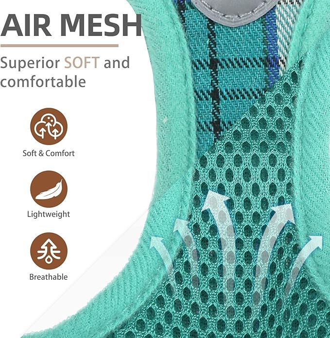 - [REFLECTIVE, PLAID PATTERN] - This Harness has two sides of reflective straps, and the middle logo also is reflective, so if you walk with your dog at night, then both of you will be safer! In addition, the classic plaid pattern is designed by our internal brand team, so it's very different from other normal harnesses. This plaid pattern looks both classic and stylish and is never out of date.