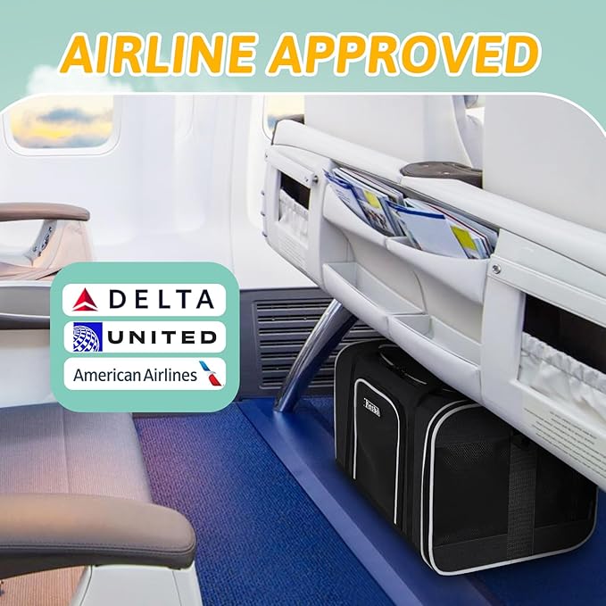 - 【AIRLINE APPROVED CARRIER 】17"L×11"W×10.5"H,This carrier is airlines approved and can be placed under seat in cabin, in compliance with most airline standard size rules.Maximum size requirements of major airlines for soft-sided pet carriers: ①Delta AirLines:18*11*11 in②United Airlines:18*11*11in③American Airlines:18*11*11in④Air Canada21.5*15.5*10.5in