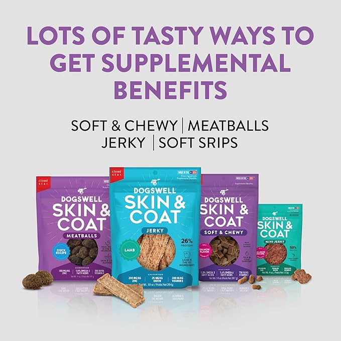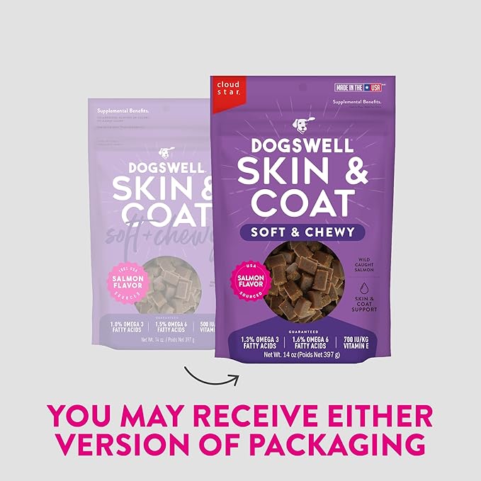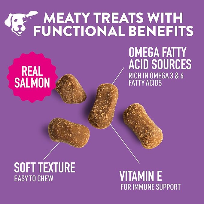 - SUPPORT THEIR SKIN & COAT Each delicious soft chew is specially formulated with high-quality protein from wild-caught salmon and with vitamin E and omega fatty acids to support healthy skin & coat.