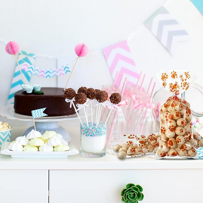 - Design: these cellophane bags are designed with paw print patterns, which can add pet party atmosphere, catch both children and adults attention, cater to the interests and taste of children