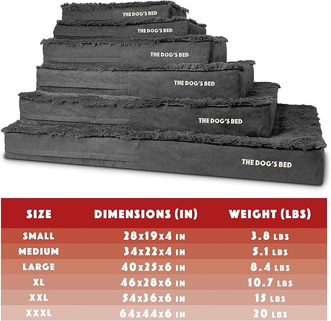 - XL Grey Fur 46x28x6” waterproof orthopedic dog bed. Solid 2” high density, orthopedic memory foam over a solid 4” base of high stability support foam with covers designed so that your bed fits your home decor seamlessly and your dog can stay close to your family
