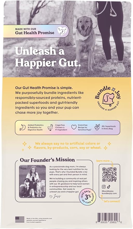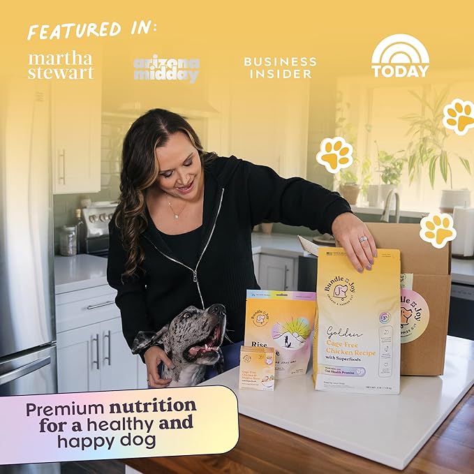 - FOR ALL ADULT BREEDS AND SIZES: Bundle x Joy dog food has omega fatty acids to support healthy skin and a shiny coat and probiotics to support digestion. The kibble pieces are small enough for small breed dogs to enjoy.