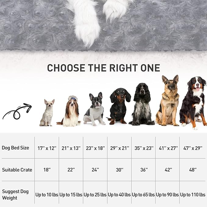 KSIIA Washable Dog Bed Deluxe Plush Dog Crate Beds Comfy Kennel Pad Anti-Slip Pet Sleeping Mat for Large, Jumbo, Medium, Small Dogs Breeds, 41" x 27", Dark Grey