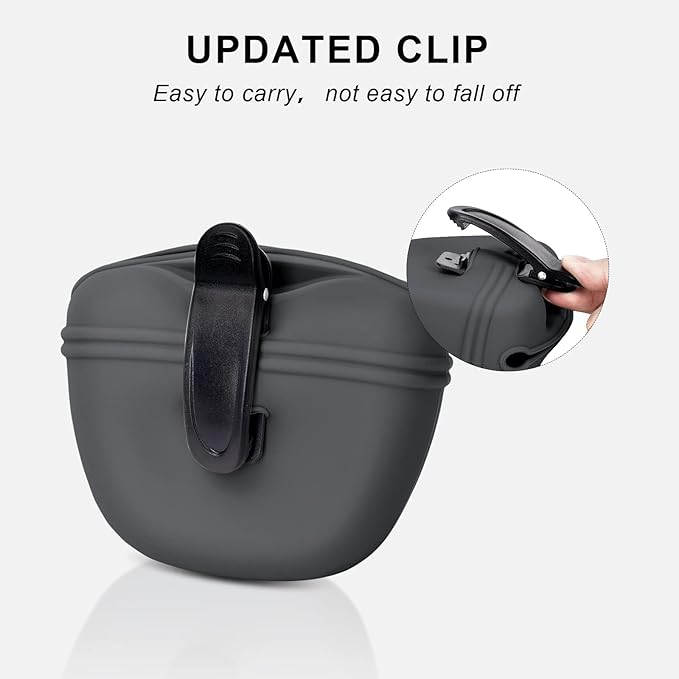 - 🐕Easy To Use🐕 - The silicone dog treat pouch is eay to use.The design of magnetic buckle closing for easy to on and off with one hand, automatic close after feeding.With the upgrated clip,you can clip to pockets、belt loops or package,it's convient to train or walk pet outside.The clicker training for dogs is easy to use, simple push button with distinct clicking sound, Train your pet just by simply pressing the clicker and command.