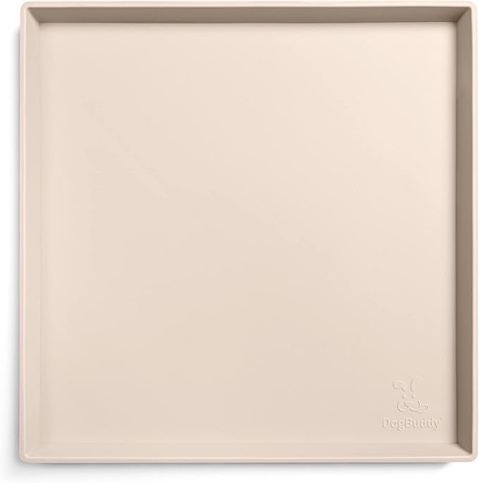 DogBuddy Dog Food Mat – Waterproof Dog Bowl Mat for Food and Water, Silicone Pet Feeding Mats for Floors, Non-Slip Placemat with High Edges for Dogs Bowls, Puppy Essentials (XS: 11" x 11", Vanilla)
