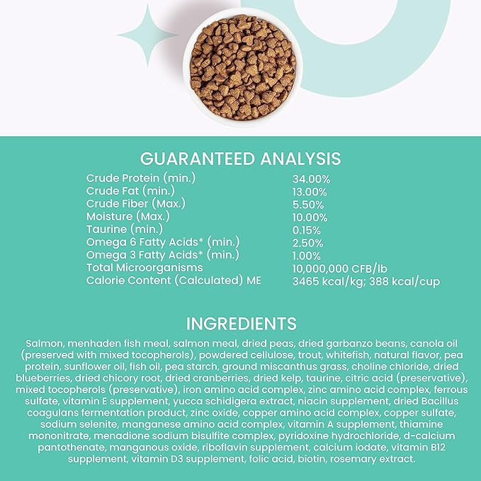 - Fish is #1 Ingredient - Since the dawn of time, cats have loved their protein—so that’s why this dish is packed with delicious, crunchy bites of the good stuff: sustainably-sourced salmon and whitefish.