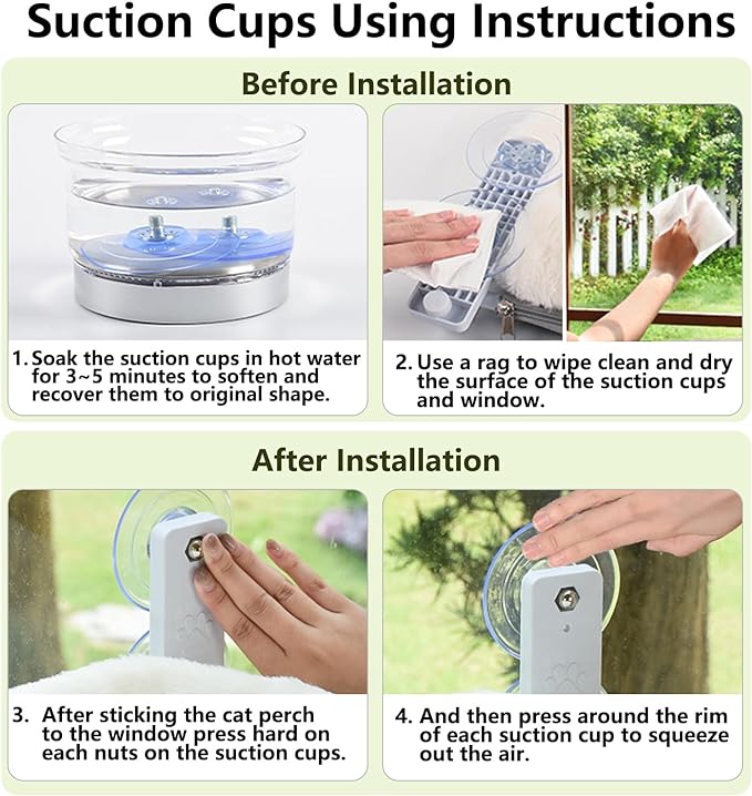 - 360° Window Perch: Cats love warmth, it is ideal for them to bask under the sun, enjoying sunbathing. They can also enjoy climbing up to the hammock and down, getting a 360° full view of the surroundings. On a sunny afternoon, enjoy languid hours with the dozing cats.