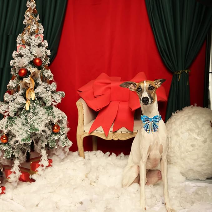 - ♥ Removable Bow Tie ♥ : The bow tie of the blue plaid dog collar is detachable. The tie has two elastic band , pass the tie through the dog collar or tie it to any other collar. You can DIY your dog collar.