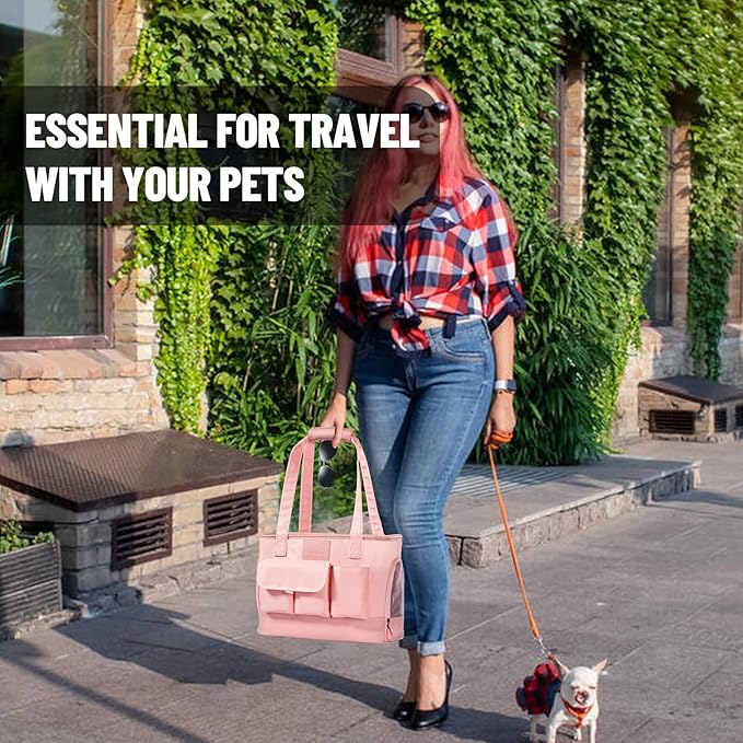 Dog Carrier, Cat Carrier, Pet Carrier, Foldable Waterproof Premium PU Leather Oxford Cloth Dog Purse, Portable Tote Bag Carrier for Small to Medium Cats and Small Dogs (Pink)