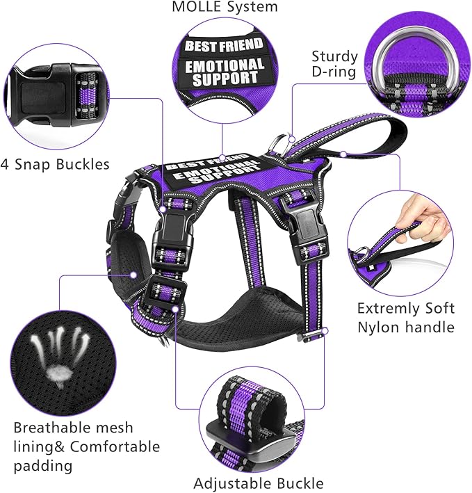 WINSEE Service Dog Vest No Pull Dog Harness with 7 Dog Patches, Reflective Pet Harness with Durable Soft Padded Handle for Puppies, Small, Medium, Large, and Extra-Large Dogs