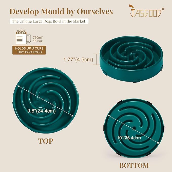 JASGOOD Slow Feeder Dogs Bowl for Large Medium Dogs,Anti-Gulping Pet Slower Food Feeding Bowls Stop Bloat,Preventing Choking