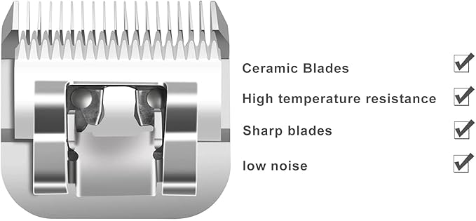 - ▶【Materials】:Comb blade 440C Stainless-steel,Shear blade Titanium-coating Ceramic,Blade sharp and strong hardness, water will not rust. It is more heat resistant than traditional carbon steel process and has less noise when used