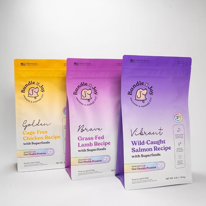 - FOR ALL ADULT BREEDS AND SIZES: Bundle x Joy dog food has omega fatty acids to support healthy skin and a shiny coat and probiotics to support digestion. The kibble pieces are small enough for small breed dogs to enjoy.