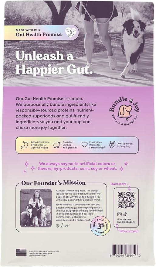 Bundle x Joy Brave Probiotic Dog Food Dry, Lamb, 18lb Bag, Natural Grain Free Adult Kibble for Digestive Health Made with Real New Zealand Lamb, 20 Plant Based Superfoods, Corn, Poultry & Soy Free
