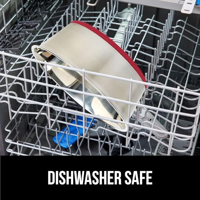 - HEAVY DUTY STAINLESS STEEL: constructed from durable, rust and dent resistant stainless steel for long lasting use; heat resistant and perfect for serving both warm and cold foods; plus, the silicone on the bottom is naturally waterproof and stain resistant, so your bowl will stay looking great, use after use
