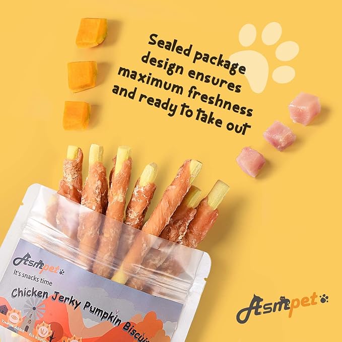 ASMPET Dog Treats Chews, Chicken Wrapped Pumpkin Biscuits, Soft Chewy Dog Snacks 10.6 oz