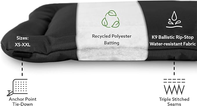 - Easy Clean: The ballistic material is naturally fur, dirt, stain, and odor resistant. It can be quickly spot-cleaned between uses with a damp towel, or you can machine wash it whole for a deeper cleaning.