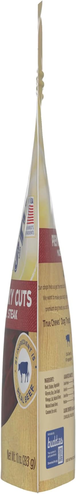 - Contains: One (1) 10-oz bag of BLUE True Chews Natural Jerky Cuts Dog Treats; Steak Recipe