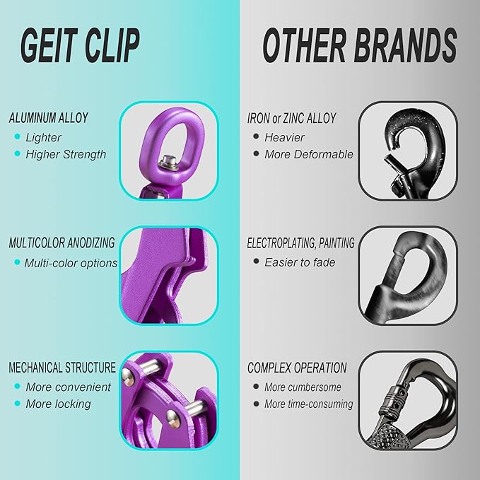 - 【Automatic Closing Frog Clip】- The buckle is made of aluminum alloy, anodic oxidation process is adopted, strong and durable. Quick release and locking dog collar clip while holding tight under strong pull. The 360° swivel ring can prevent the belt from tangling.