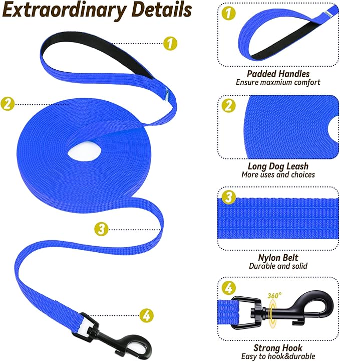 - NO TANGLE LONG ROPE LEASH: the round climbing rope and 360 degree rotating clasp design long training leash will not tangle whether it is in use or when you roll it up, great for hiking, camping, training, hunting, backyard, beach, recall training, outdoor play with tennis balls, and swimming