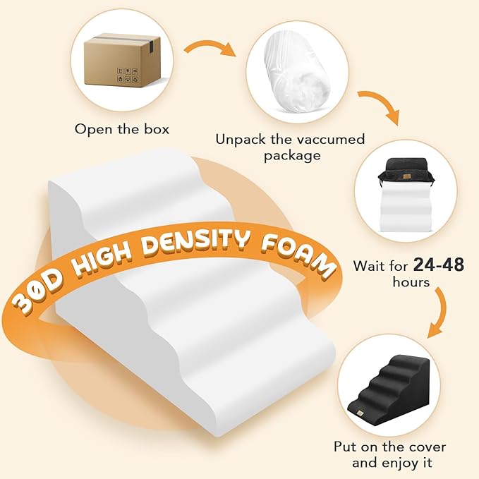 - Durable for All - The pet slope ladder made of 30D high density foam can support 100 lbs. High-quality foam with good recovery for maximum climbing comfort for puppies and kittens. It won't deform even after repeated use, always help your little ones to reach high places they can't go without you.