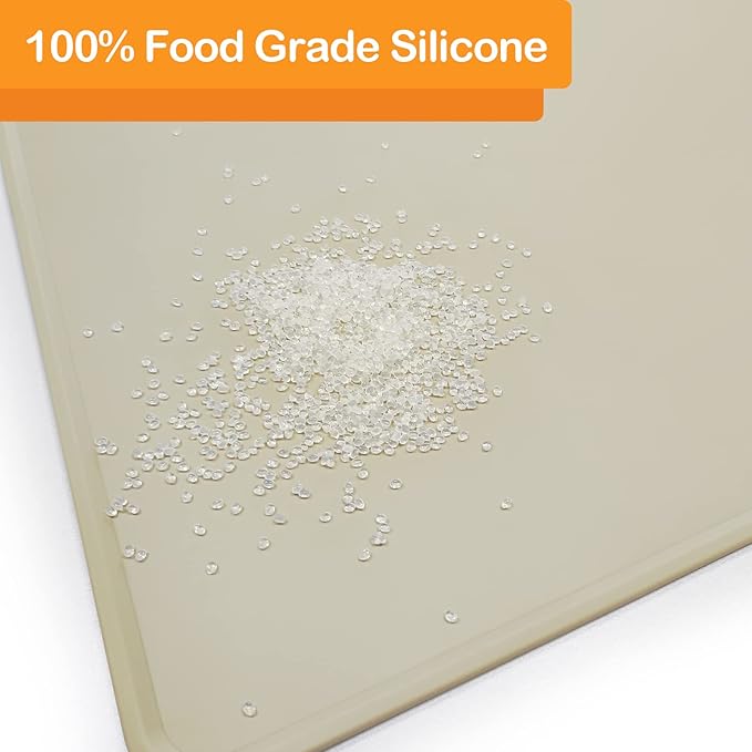KVK Dog Water Mat 39.4 by 29.5in Extra Large - Silicone Mat for Dog Bowls Waterproof Non Slip - XL Pet Mat for Food and Water Protect Floors - Beige