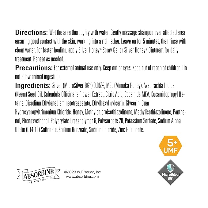 Absorbine Silver Honey Rapid Skin Relief Medicated Shampoo, Medical Grade Manuka Honey & MicroSilver BG, Rejuvenating, Soothing & Hydrating, 16 fl oz