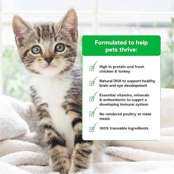 - FORMULATED TO HELP KITTENS THRIVE: This nutritious combination of proteins is formulated for growing kittens, thanks to a blend of humanely raised chicken and turkey, paired with functional ingredients like dried chicory root and pumpkin to support healthy digestion.