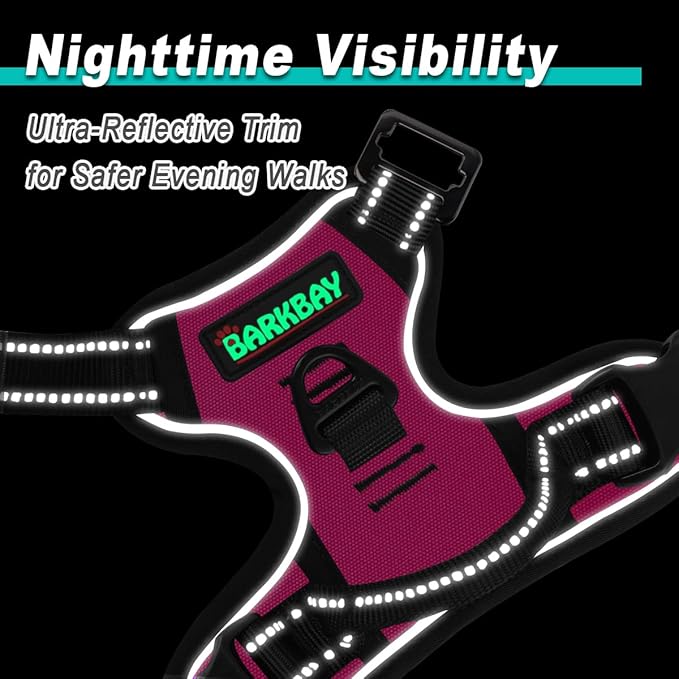 BARKBAY Dog Harness No Pull 3 Buckles for Small Dogs - Adjustable, Reflective, Comfortable, No Choke, Heavy-Duty - Perfect for Outdoor Training, Walking, and Hiking - Strong & Durable - S & Pink