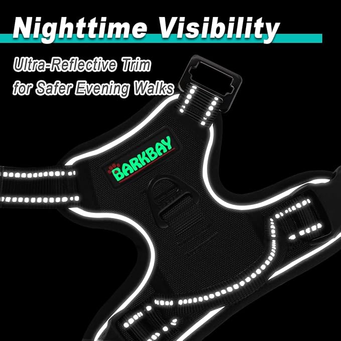 BARKBAY Dog Harness No Pull 3 Buckles for Large Dogs - Adjustable, Reflective, Comfortable, No Choke, Heavy-Duty - Perfect for Outdoor Training, Walking, and Hiking - Strong & Durable - XL & Black