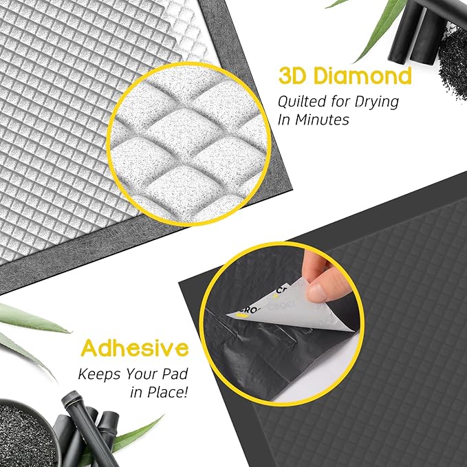 - Cat Box Pee Pads Leak-Proof: Features 3D diamond quilting for rapid moisture absorption; bottom PE film prevents leakage; keeps the litter box cleaner and drier