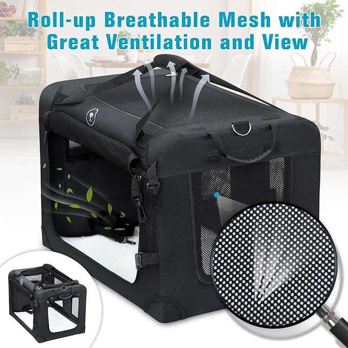 - 【GREAT VISIBILITY AND BREATHABILITY】 There are mesh windows on top and side of the carrier for great ventilation. It's very convenient for you to observe your pet during car travel. Three roll-up breathable mesh windows provide your cat three access options.