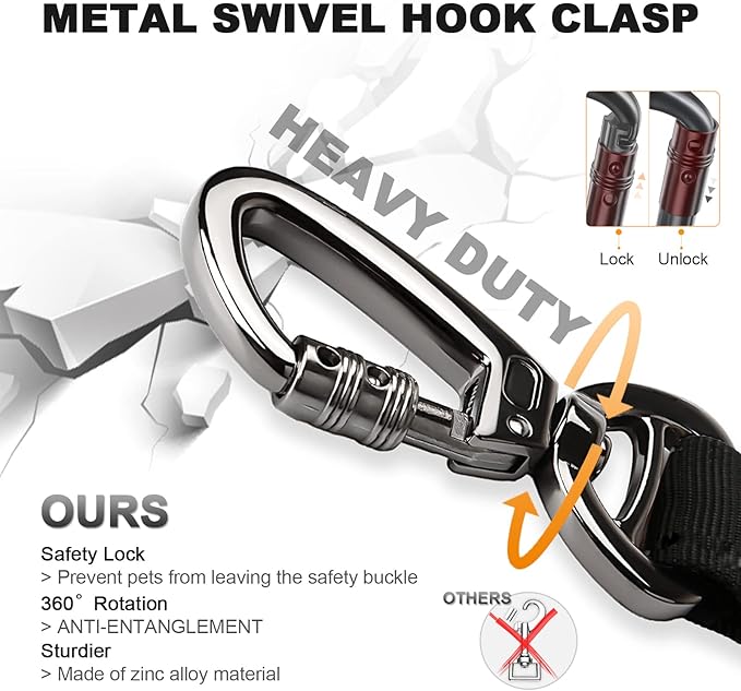 - 【TACTICAL DOG LEASH】This bungee dog leash has two control handles, one handle at the end and one soft padded handle near the clip. The one close to the clip or collar area is nice to get control quickly on busy sidewalks, bike lanes, and crowded areas.Suitable for training dogs, hunting dogs, samoyed, shepherd, perfect for large dogs and medium dogs.