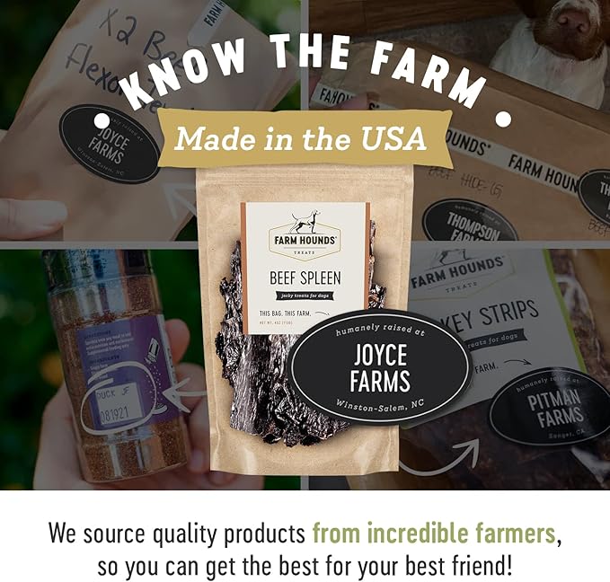 - FARM HOUNDS - At Farm Hounds, we believe healthier animals are happier animals. With your canine in mind, we make all of our treats nutritionally beneficial and delicious. Our close relationship with all-American family farmers who raise their animals in a humane way, helps us use premium raw materials for our products.