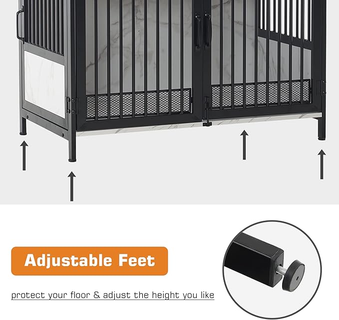 - Adjustable Feet: The dog cage features easily adjustable feet, allowing you to set the height you prefer while protecting your home floors from damage
