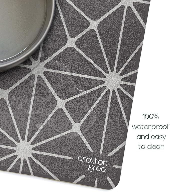 CROXTON & CO. Non-Slip Faux Leather Pet Feeding Mat for Dog Bowls | Large Bowl Mat for Food and Water | Durable, Easy-to-Clean Pet Food Mat for Floors | Size: 12"x18"