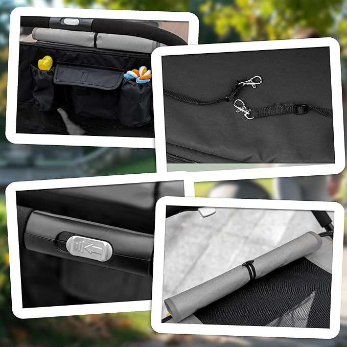- Better Construction: This frame is equipped with shock absorbers that provide a smooth ride while the rear wheels have foot brakes that are convenient for parking. The thick 600D Oxford fabric helps your dog carriage endure outdoor conditions and stay sturdy with doggies inside.