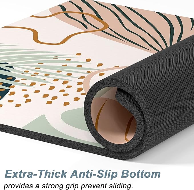 Rnivvi Dog Food Mat, 16" x 24" Boho Absorbent Dog Cat Bowl Mat for Food and Water, Cute Anti-Slip Rubber Pet Feeding Rug Protect Floors, Puppy Placemat for Feeding & Watering Supplies, Tropical Leaves