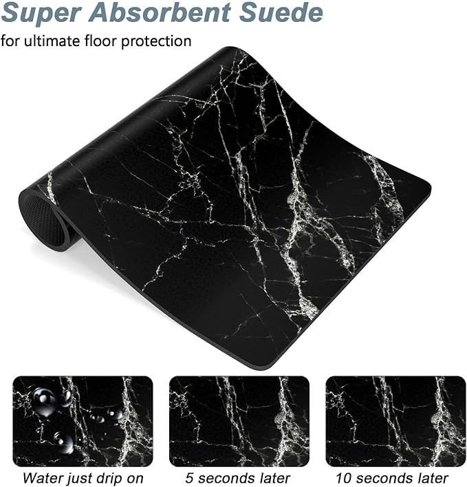 Rnivvi Dog Food Mat, 12" x 19" Marble Absorbent Dog Cat Bowl Mat for Food and Water, Cute Anti-Slip Rubber Pet Feeding Rug Protect Floors, Puppy Placemat for Feeding & Watering Supplies, Black