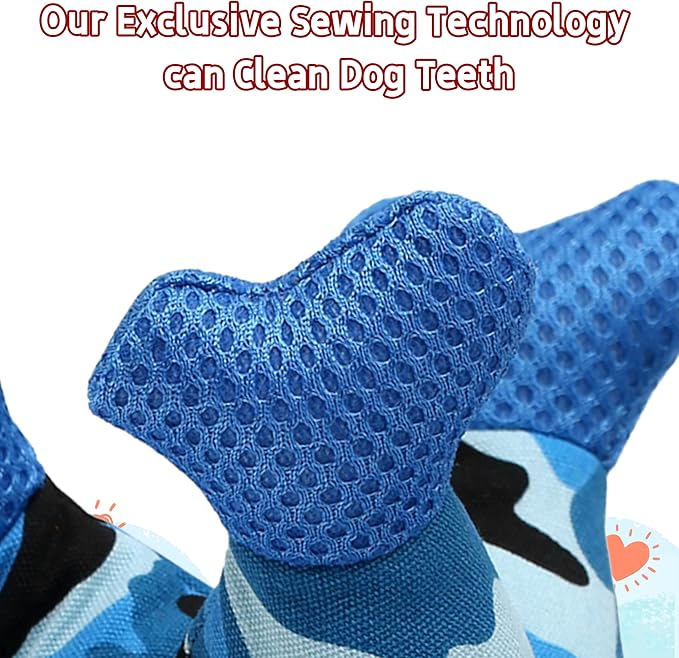 Dog Chew Squeaky Toys, Dog Teeth Cleaning Toy, Tug of War, Stuffed Jack Bone Toy with Squeakers, Interactive Toy for Small Medium Large Dogs,Blue