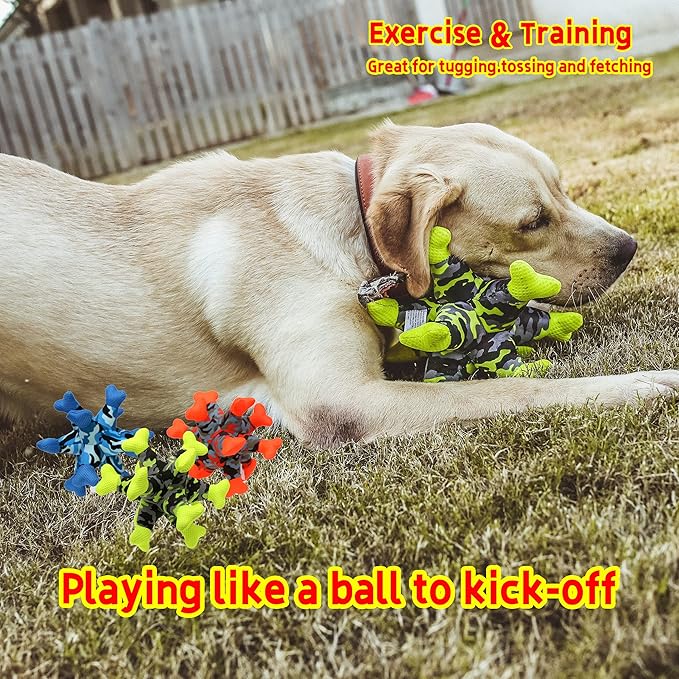 - Unique Design - Dog canvas chew toys are made of twelve soft salient stuffed bones which are flexible, This funny big dog toy is designed with jack shaped, easily thrown and kicked out like a soccer ball, bounces well, so it's fun for the dog to fetch