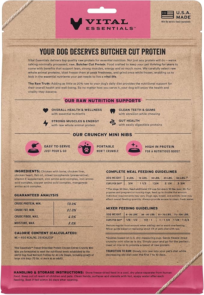 Vital Essentials Freeze-Dried Raw Chicken Meal or Mixer Dog Food Crunchy Mini Nibs, 14 oz