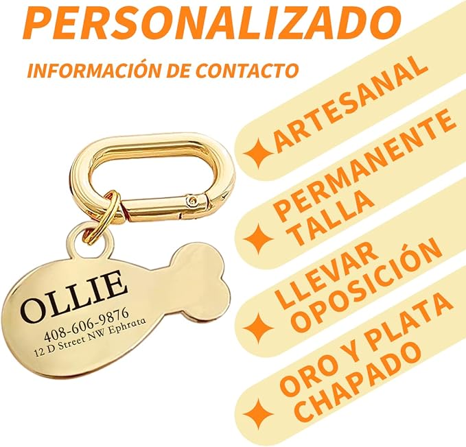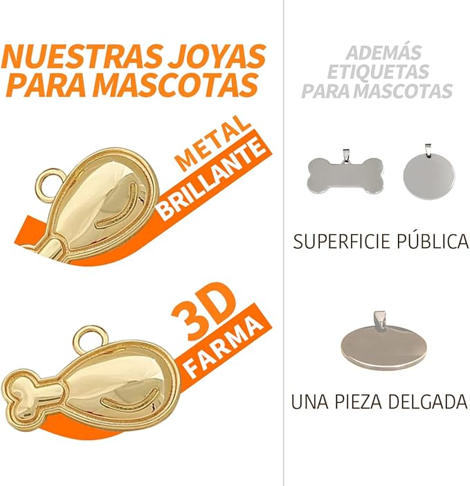 - Gold and rhodium-plated pet tags feature a shimmering, jewelry-like finish.