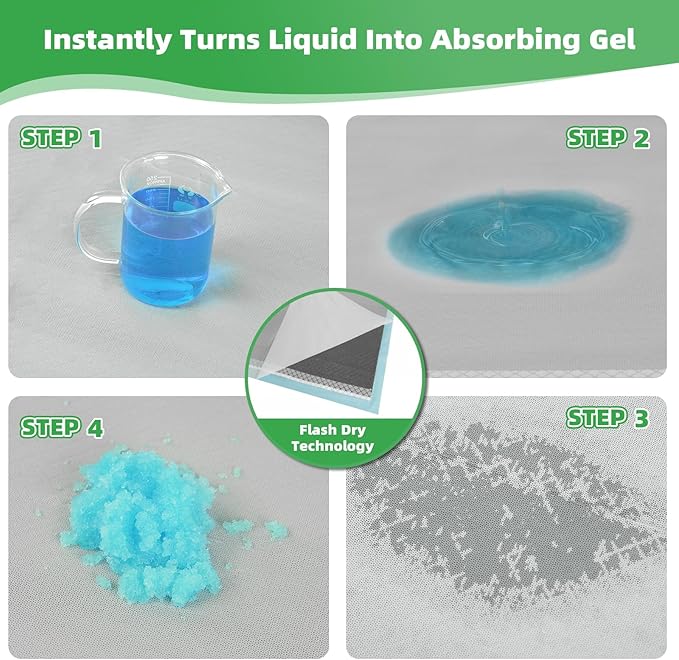 - Innovative 6-Layer Protection Design: The top layer of the pad uses a perforated film that is soft and comfortable, and can absorb urine quickly. The 2nd layer is activated carbon, it can eliminate odors effectively. The 3rd layer features diamond quilting ensuring urine flows in the right direction. The 4th layer is the polymer cotton core that can turn urine into gel instantly. The last two layers are important in keeping liquid leak-proof, especially the last layer of plastic backing.