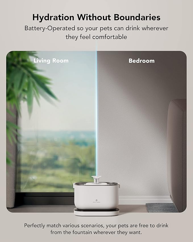 - Exceptional Battery Life - Powered by a 5,000mAh built-in rechargeable battery, the PETLIBRO wireless cat water fountain delivers fresh, clean water on a full charge. It will keep your pets well-hydrated even during power cuts