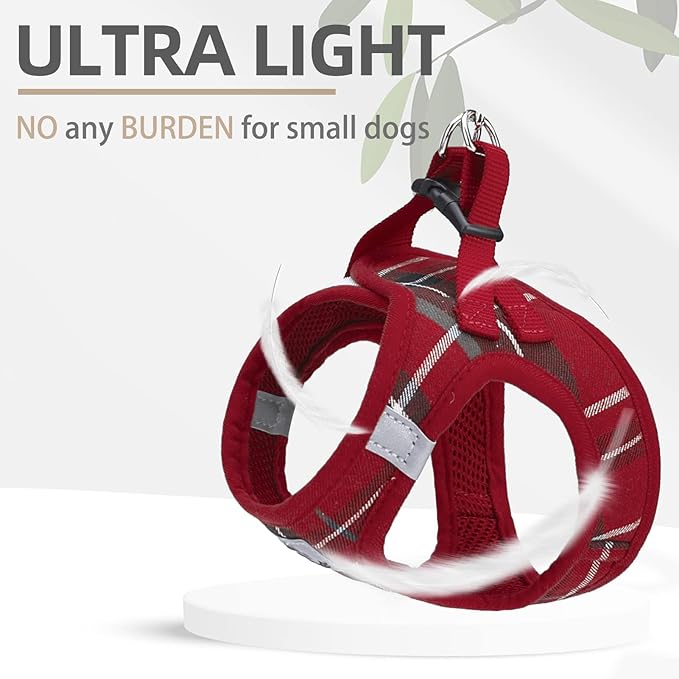 - [REFLECTIVE, PLAID PATTERN] - This Harness has two sides of reflective straps, and the middle logo also is reflective, so if you walk with your dog at night, then both of you will be safer! In addition, the classic plaid pattern is designed by our internal brand team, so it's very different from other normal harnesses. This plaid pattern looks both classic and stylish and is never out of date.