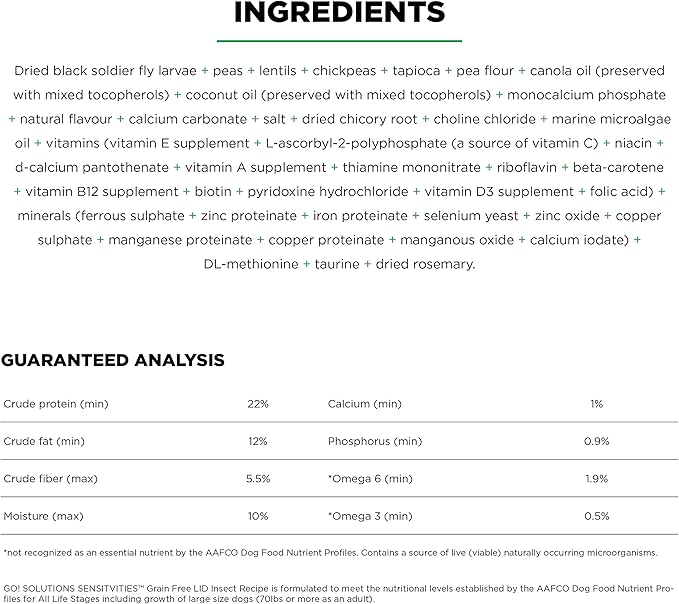 Go! Solutions Sensitivities Limited Ingredients, Grain-Free Dry Dog Food, Insect Recipe for Sensitive Stomach, 12 lb Bag